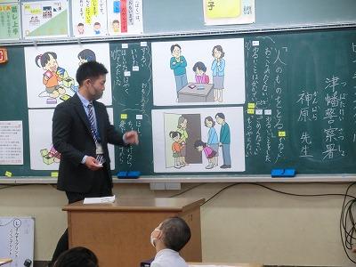 2,3限目には津幡警察署の方に来校していただき、2,5年生がピュアキッズスクールを行いました。2限目に2年生が「人のものをとる」ことについて考えました。3限目には5年生が「いじめ」について考えました。いずれの行為も「犯罪」であり、当事者はもちろん、周りの人たちも悲しい気持ちになる行為であることを学びました。津幡警察署の方も大海っ子の聞く姿勢や反応の良さに感心していました。