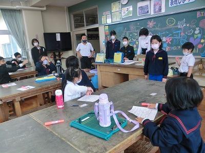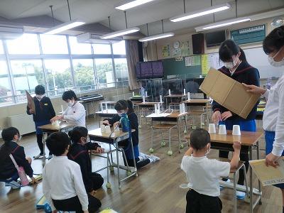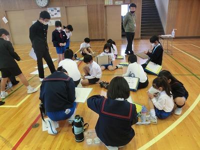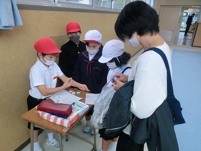 本日、幼小連携事業として、1,2年生が、来春入学予定の園児を含む大海こども園の子供たちを招いて、「おもちゃランド」を行いました。1,2年生が考えた6つのゲームコーナーで、園児といっしょに交流しました。園児を前にすると、1年生も2年生もお兄さん、お姉さんになり、とても頼もしく見えました。
