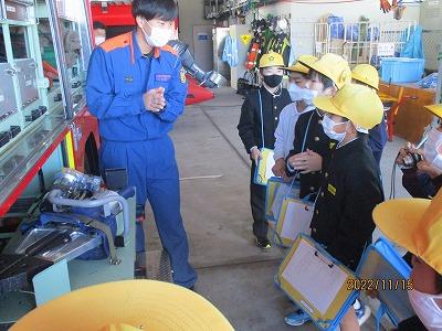 みずほ学級と3年生がそれぞれ社会見学に行きました。みずほ学級の子供たちは、校区のお店の見学に行きました。これまで、「セブンイレブン」と「望月商店」の見学に行きました。今回は、野寺にある野菜などの無人販売所「峠の駅」を見学しました。これまでのお店と雰囲気がガラリと変わり、興味深そうに写真を撮っていました。3年生はかほく市消防本部を見学しました。やはり男の子は消防車を前に目をキラキラさせていました。そして消防署員の方々の説明に対し、一生懸命にメモを取っていました。