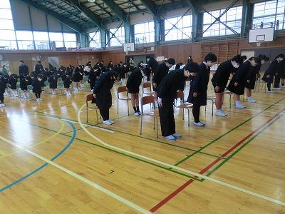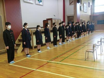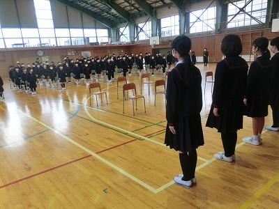 いよいよ明後日が卒業式です。本日2限目に卒業式の予行を行いました。卒業生入場から退場まで一通り流れを確認しました。本番を意識して全員がきびきび行動していました。本番ではさらにしっかりした姿を見せてくれると思います。