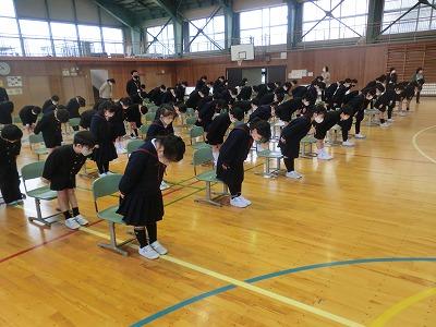 今日は、今年度最後の授業日です。5限目に修了式を行いました。校歌を歌い、校長先生のお話、西先生からの学習の話と続きました。そして、今年度最後の生活目標の振り返りをしました。どの子もとてもりっぱに振り返りを言えていました。この一年の成長が感じられました。そして、最後に春休みの生活について川井先生から話があり、修了式が終わりました。