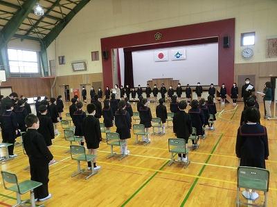 修了式に引き続き、離任式を行いました。先日、卒業生とお別れしたばかりで、今度はお世話になった先生方とのお別れです。子どもたちにとっても先生方にとってもさみしい気持ちになる式でしたが、最後は元気よく校歌を歌ってお別れしました。卒業生もたくさん来てくれて、とても心が温かくなる大海小らしい離任式でした。