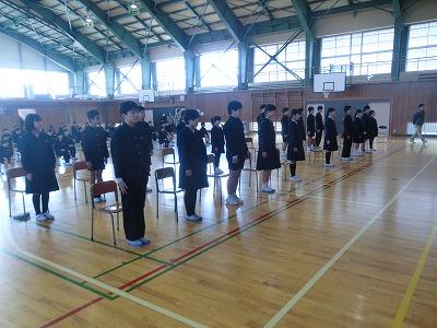 いよいよ明後日が卒業式です。本日2限目に卒業式の予行を行いました。卒業生入場から退場まで一通り流れを確認しました。本番を意識して全員がきびきび行動していました。本番ではさらにしっかりした姿を見せてくれると思います。