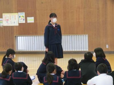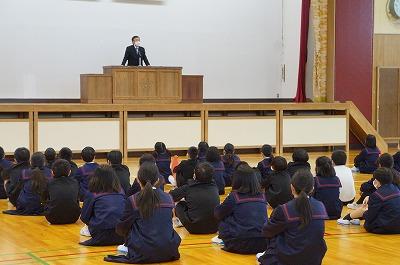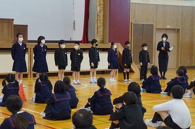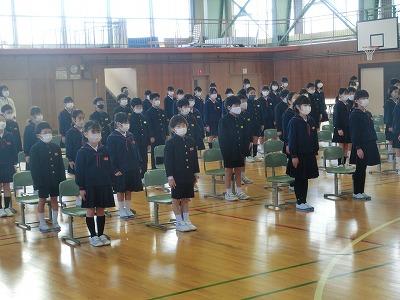 今日は、今年度最後の授業日です。5限目に修了式を行いました。校歌を歌い、校長先生のお話、西先生からの学習の話と続きました。そして、今年度最後の生活目標の振り返りをしました。どの子もとてもりっぱに振り返りを言えていました。この一年の成長が感じられました。そして、最後に春休みの生活について川井先生から話があり、修了式が終わりました。