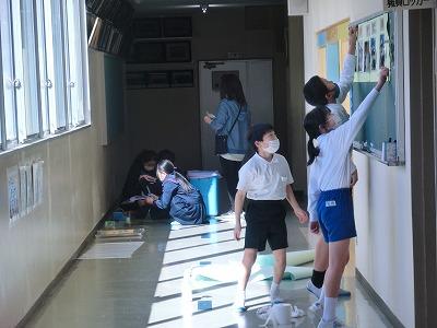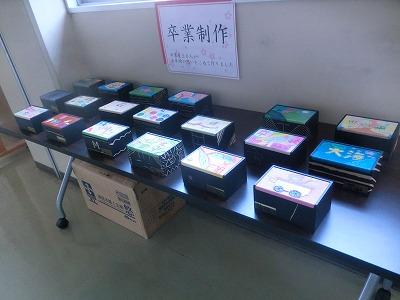 卒業式を二日後に控え、卒業制作が体育館前廊下に展示されました。図工の時間に作ったオルゴールと書写の時間に書いた「自分だけの一文字」です。どれも卒業に向けた思いのこもった作品が並びました。ぜひ皆さんに見てもらいたいと思います。6限目には、6年生が名残を惜しむように校庭で遊んでいました。もう少しで卒業ですね。