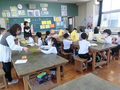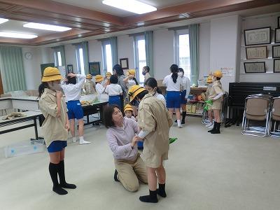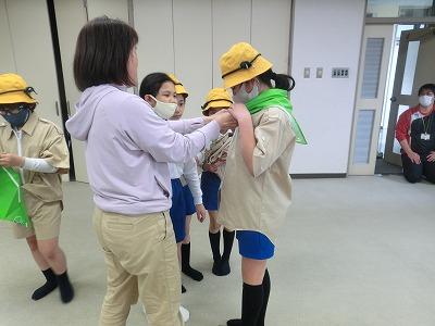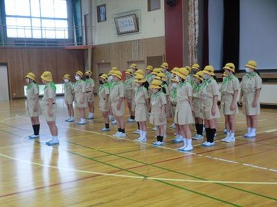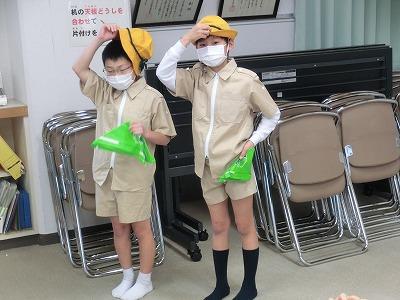 同じく5限目に、5年生は来週に迫った緑の少年団の結団式に向けて、制服を試着してみました。高学年になった気持ちになれたのか、とてもうれしそうでした。本番も凛々しくがんばってください。