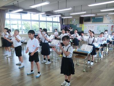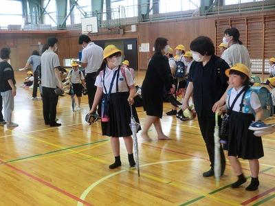 今日は、今年度2回目の授業参観日。まず、プール開放に向けての救命講習会から始まりました。保護者を対象に高松消防の職員にご指導していただきました。その後、体育館に移動して、音楽会の校内発表を行いました。保護者を前にして、子どもたちは前日以上に気合の入った様子で、とても感動しました。そして授業参観。1,3年生は合同で音楽の授業をしました。楽しそうな歌声が校舎中に響き渡っていました。4年生は器械運動の発表会でした。本番と同じような緊張感の中できびきび演技していました。他の学年もそれぞれ保護者が見守る中、集中して授業に取り組んでいる様子が伺えました。そして、最後に引き渡し訓練です。校区に強盗事件が発生し、犯人が逃走中という設定で、保護者に引き渡す訓練を実施しました。保護者、祖父母の方々に多数参加していただき、誠にありがとうございました。