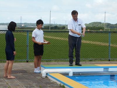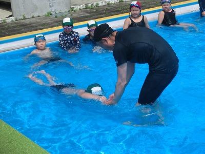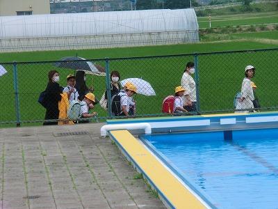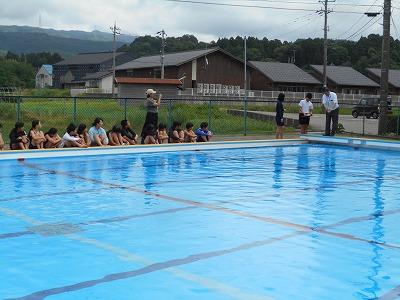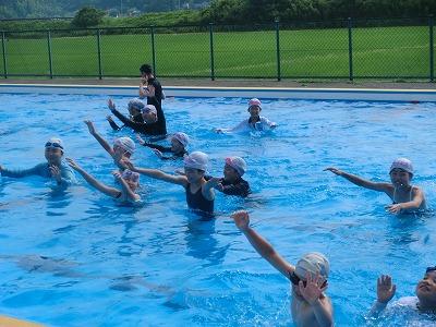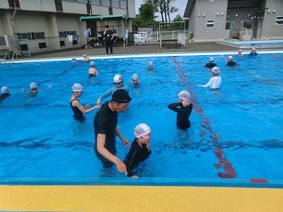 6/16(金)にプール開きをして、先週からどの学年も体育の時間は水泳練習になりました。今日は、朝から天候が心配されましたが、蒸し暑くてプールに入るには絶好の天気になりました。それで、全学年がプールに入り、水泳練習に取り組みました。今年度もクラブパレットの西田さんにご指導いただきます。今日は、1,2年生と5,6年生が指導を受けました。夏休みまでに1人でも多くの子が25m泳げるようになってほしいと思います。