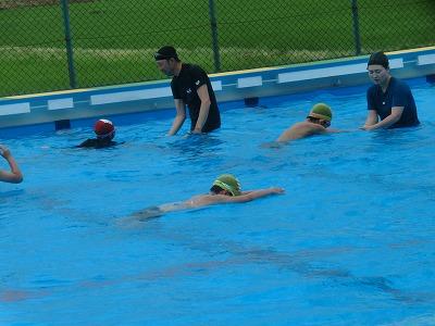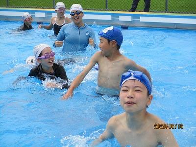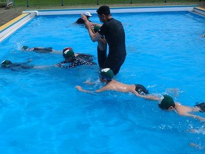 ☆ 5・6限目(クラブパレット 西田さん) 今日もクラブパレットの西田さんに水泳指導をしていただきました。5限目は3,4年生、6限目は5,6年生が水泳練習に取り組みました。