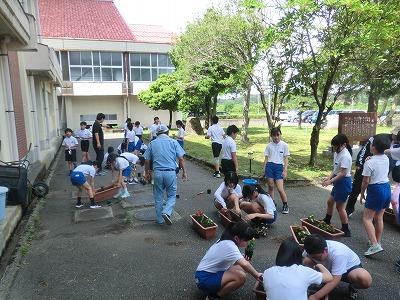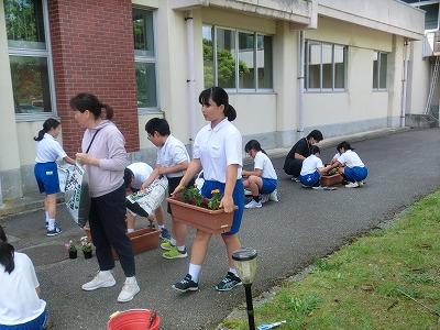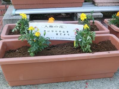 本日、昼休みに4~6年生で、人権の花としていただいたマリーゴールド、ペチュニア、ベゴニア、サルビアの花植えをしました。思いやりの心が育つようにという思いが込められています。きれいな花がまた玄関に飾られました。これから、水やりなどのお世話をよろしくお願いします。