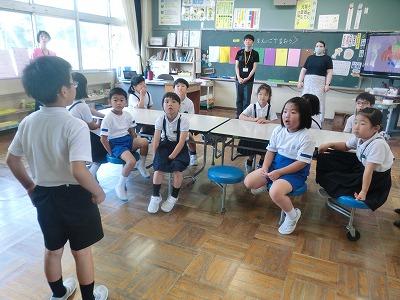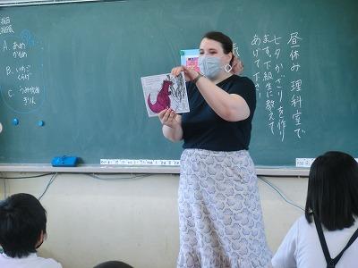 ☆ 朝学習・1限目(ローラマリー先生) 朝学習ではALTのローラマリー先生が6年生に絵本の読み聞かせをしてくれました。そして、1限目には1,2年生と外国語活動をしました。