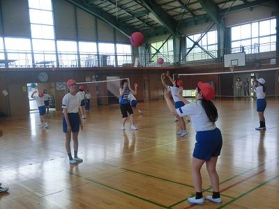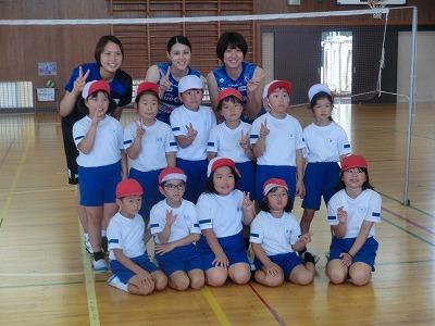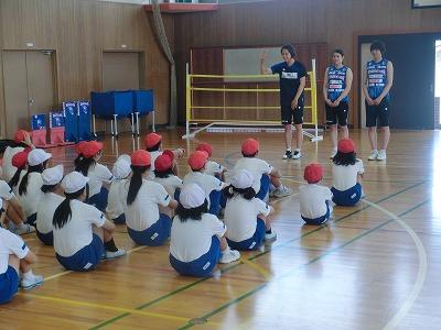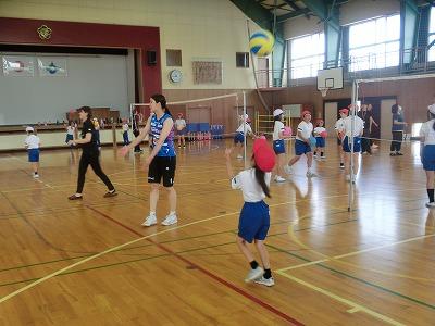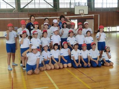 ☆ 3限目(PFUブルーキャッツ) 地元のバレーボールチームであるPFUブルーキャッツのメンバーが来校されて、1,2,6年生を対象にバレーボール教室を開きました。とても楽しそうにバレーボールに親しみました。