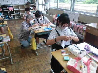 ☆ 5限目(葛葉さん、吉村さん、黒部さん) 地域にお住いの葛葉さん、吉村さん、黒部さんに来校していただき、5年生が家庭科の裁縫を教えていただきました。最初は苦手意識があった子どもたちも「裁縫が好きになったかも」と最後は笑顔になっていました。