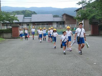 今日は、1学期終業式。4限目にオンラインで行いました。校歌、校長先生のお話に続いて、生活目標の振り返りを行いました。各クラスの代表児童がしっかり自分の意見を話していました。そして、夏休みの生活、学習についての話がありました。式後、1学期の集団登下校について振り返り、これからに生かしていこう、と反省会を行いました。各地区別に集まり、「よかったこと・がんばったこと」「直したいこと・がんばりたいこと」を話し合い、振り返り用紙に書いていました。これからも安全に気を付けて登下校しましょう! 残念ながら大海伝統の相撲大会は実施できませんでしたが、そのほかの多くの行事は、保護者・地域の皆様のご理解、ご協力のおかげで無事行うことができました。本当にありがとうございました。