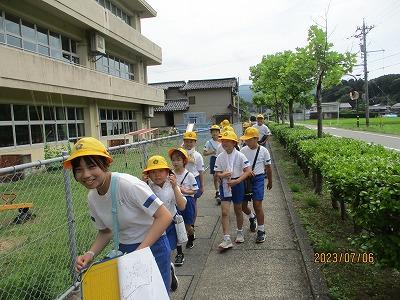 異学年との交流を目的に行っているなかよし班での活動ですが、今回は、なかよし班でウォークラリーを行いました。それぞれのチェックポイントで出される問題に答えて、キーワードになる文字を一文字ずつ集めて回るルールです。6年生が下級生の歩くスピードに合わせ、しっかりまとまって歩く姿がとても素敵でした。