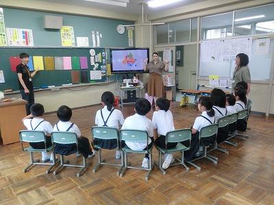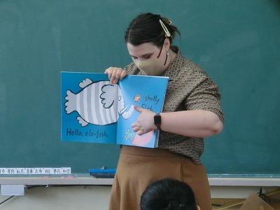 ☆朝自習(5年)・1限(1,2年) 朝自習ではALTのローラ・マリー先生が5年生に絵本の読み聞かせをしてくれました。そして、1限目には1,2年生と外国語活動をしました。ローラ・マリー先生は本日が最後の授業でした。今までありがとうございました。