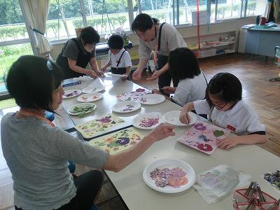☆3限目(1年生) 1年生が押し花を使ってランチョンマット作りをしました。いつも押し花を教えてくれる葛葉さんにご来校いただき、教えてもらいました。とてもきれいなランチョンマットができあがりました。