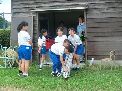 いよいよ明日が運動会です。それで本日午後から4~6年生が、各係ごとに分かれて明日の準備をしました。皆、練習の時と同じように一生懸命に働いていました。