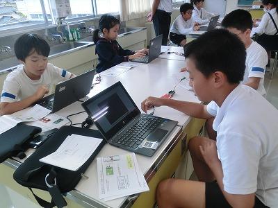 ☆5年生は、3,4限目にプログラミング学習に取り組みました。(株)PFUの皆さんのご指導の下、「Ichigo Jam」を使ってプログラミングについて学びました。子どもたちはいつもと違う学習に興味をもって取り組んでいました。