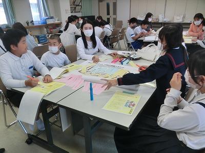 ☆6年生は、3,4限目に前回に引き続き、「認知症」について学習しました。今回は県立看護大の学生さんと一緒に「身近な人が認知症になった時、自分なら何ができるか」について考えました。みんな自分の家族や身の回りの人たちを思い浮かべて、思いやりを持って接する事を真剣に考えることができました。