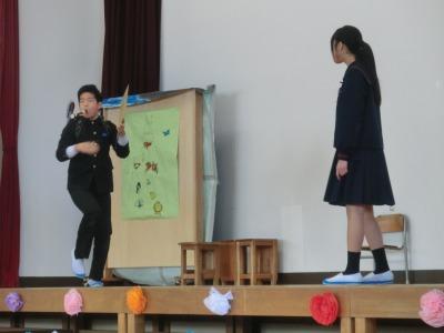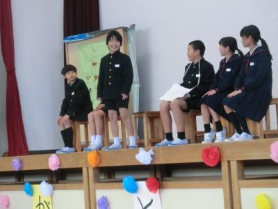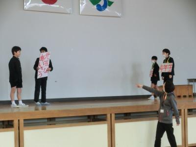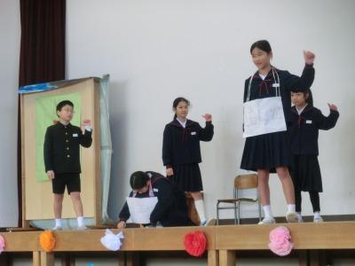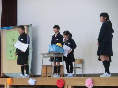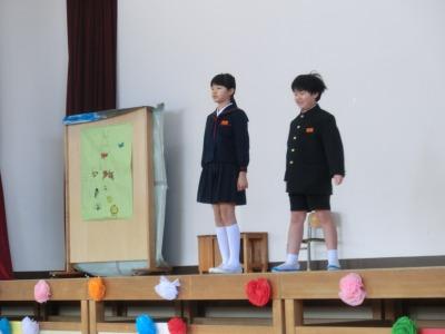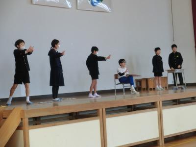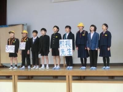 いよいよ今週末(2/16)は6年生を送る会です。どのクラスも2月に入ってから一生懸命練習しています。今週からは、本番を意識して体育館のステージで練習が行われます。1,2年生は、もう先週から何度もステージで練習していたので、とてもスムーズに本番のようにできていました。4年生は、初めて体育館での練習のようで、立ち位置や声の出し方など先生から指導を受けながら一通り演じてみました。本番までにさらに良いものに仕上げていきましょう。
