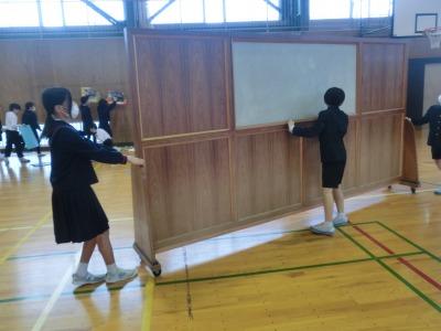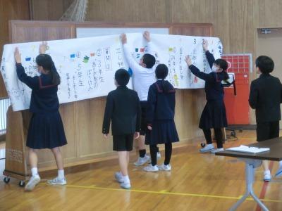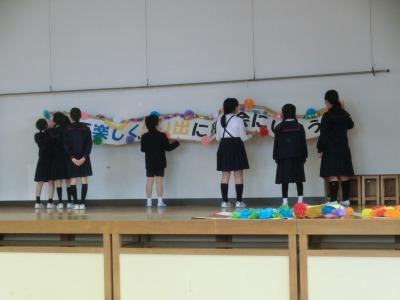 いよいよ明日(2/16)は6年生を送る会が行われます。それで、今日は各学年、最後のリハーサルを体育館で行いました。どの学年も本番を意識して、とても緊張感のあるリハーサルでした。また、6限目には、4.5年生が会場準備を行いました。きれいに飾り付けしてくれて、明日の本番がとても楽しみになりました。