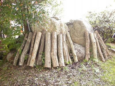 いただいた原木は玄関前池の周辺に置きました。