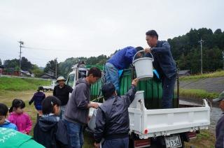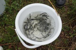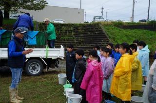 2限目に大海川でアユの放流を行いました。朝からの悪天候でしたが、放流時に雨は止み、天気が4年生の味方になってくれました。5~8㎝ほどに育ったアユの稚魚をバケツに入れてもらい、「大きく育ってね」と願いを込めて大海川に放流しました。ふるさと学習の一環として例年のように、大海川漁業協同組合の方々のご協力いただきました。ありがとうございました。