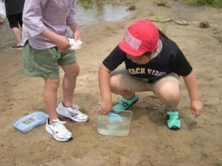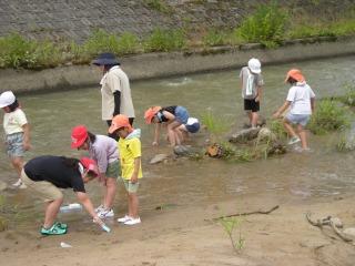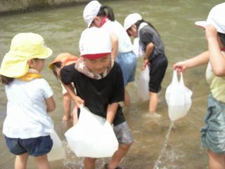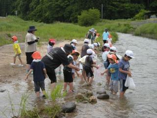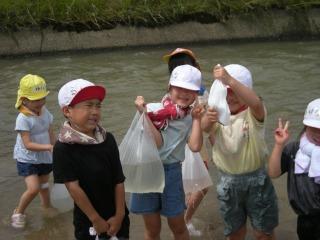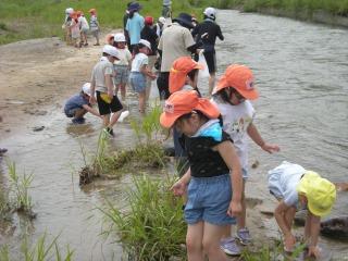 1,2年生が2~4限目に大海こども園年長さんと一緒に大海川に行きました。冷たい水に足を入れ、どの子も気持ちよさそうでした。濡れることも気にせずに、みんなで夢中に遊んでいました。こども園の子たちとも仲良くできてよかったです。