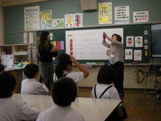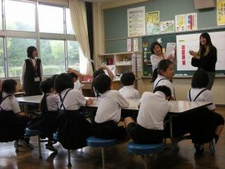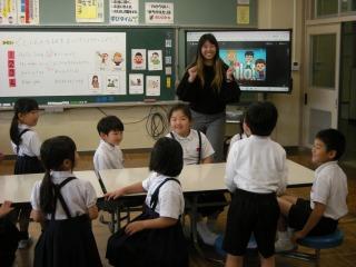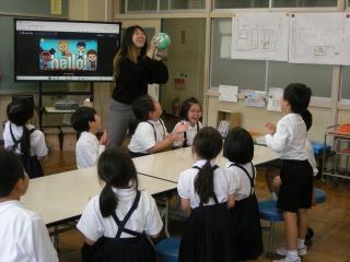 1,2年生の1限目は高松中学校ALTグレース先生との外国語活動の時間でした。1年生はグレース先生とのはじめての外国語活動で、どんなことをするのか少し心配な子もいたようですが、明るく楽しいグレース先生と一緒に活動を楽しむことができました。