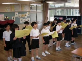 5,6年生は6/11の音楽会に向けての練習に取り組んでいます。合奏「威風堂々第1番より」・合唱「海のマーチ」を市内他小学校の皆さんに聞いてもらいます。5,6年生1人1人の音・声を一つにまとめ、聞く人の心に響く合奏・合唱となるよう頑張っています。