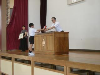 4限目に1学期の終業式を行いました。校歌を歌った後は、校長先生のお話、生活目標のふり返りの発表、夏休みの生活、プール利用のきまりについて話を聞き、最後は今月の歌「世界に1つだけの花」を全校のみんなで元気よく歌いました。