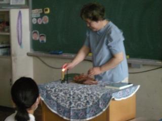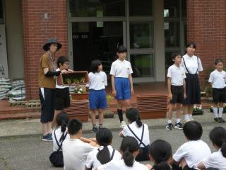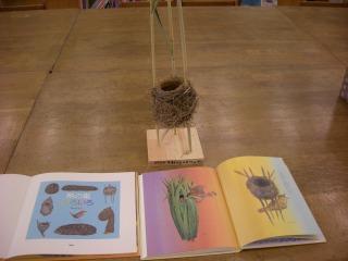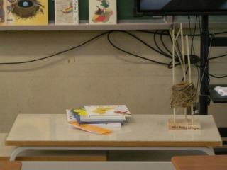 今日は本だけではなく、河原のアシ原にあったオオヨシキリの巣の実物を持ってきて、子どもたちに見せてくださいました。きれいな鳥の巣の形に子どもたちも興味津々でした。手軽に情報が手に入る現代ですが、やはり、本物に触れることの大切さを感じました。