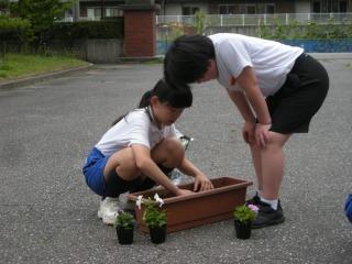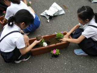 本日、昼休みに4~6年生が、先日いただいた「人権の花」マリーゴールド、ペチュニア、ベゴニア、インパチェンス、日々草の花の苗を植えました。きれいな花で玄関がにぎやかになりました。「人権の花」には思いやりの心が育つようにという思いが込められています。さわやか委員さん、この後の水やりなどのお世話もよろしくお願いします。