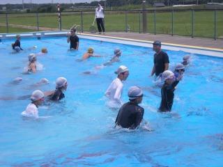 ☆ 4限目に5,6年生がクラブパレットの八田さん、村本さんに水泳指導していただきました。この夏でどれくらい泳力が上がるでしょうか。楽しみです。