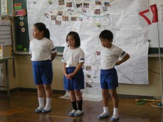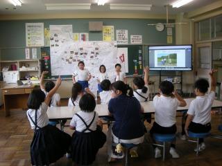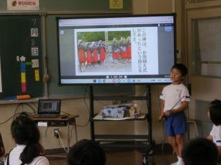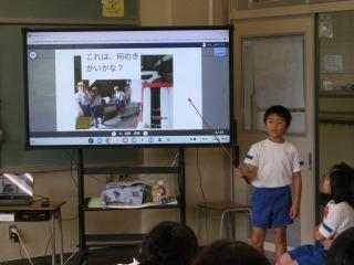 ☆ 2限目に2年生が、生活科で行った校区探検について3年生に向けて発表しました。若緑、二ツ屋、瀬戸町の様子についてクイズ等を交え、楽しんで聞くことができるように工夫した発表でした。