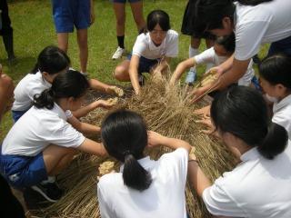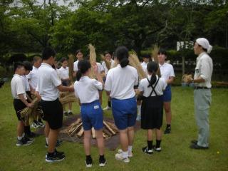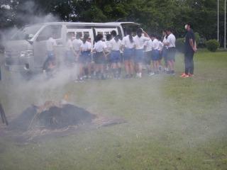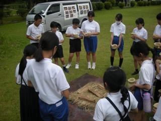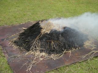 先日の土器づくりの続きで、6年生が土器を焼いて完成させることができました。土器の上にわらをかぶせ、さらにわら上部に粘土を塗り固め、蒸し焼きになるようにして火をつけました。ご指導いただいたかほく市スポーツ文化課の方には縄文土器と弥生土器の焼き方の違いについての説明もしていただきました。暑い中、ご指導ありがとうございました。