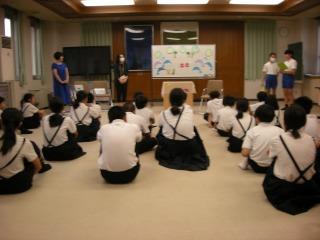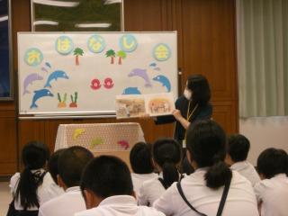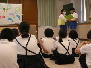 給食後の時間に読み聞かせボランティアグループ「ひみつのポッケ」さんが5,6年生に読み聞かせをしてくださいました。2つのお話を読んでいただきました。平和について考える機会にもなる内容でした。