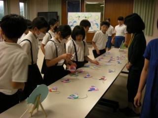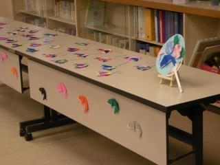お話会の後には、お土産として浮き輪をつけたイルカの折り紙もいただきました。ひみつのポッケさん、ありがとうございました。