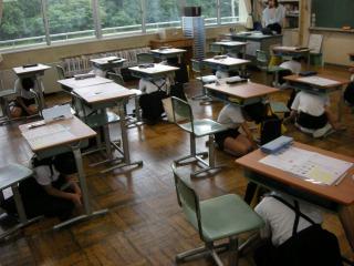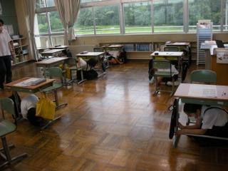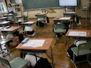 11時の市内一斉防災無線の放送に合わせて、「しゃがむ、かくれる、じっとする」の安全行動をとりました。これからも防災への意識を忘れないようにしたいと思います。