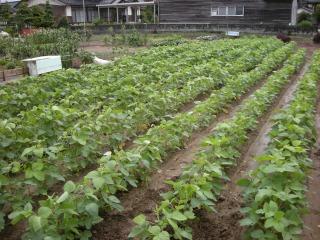 お世話になっている瀬戸町・髙﨑さんの大豆畑に行き、土寄せについて学びました。昨日の雨のため、今日は土がドロドロなので、土寄せ作業は土の乾いた日に行うことにしました。