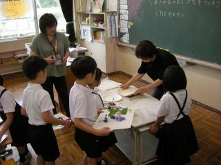 してもらいました。葛葉さんが本の重さでしっかりと花を押さえたあと、出来上がった押し花を持ってきていただきます。出来上がりが楽しみです。