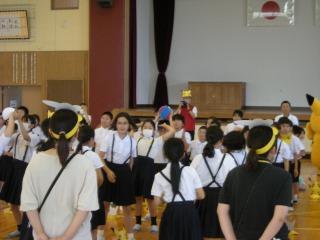 昼休みに全校児童でバナナおにごっこを行いました。普段は60人以上の子どもたちで一斉におにごっこをする機会があまりないのでとても楽しく、元気に活動できました。企画してくれた企画・運営委員会の皆さん、ありがとうございました。