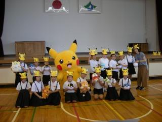 「ポケモン・ウィズ・ユー財団」の方々が、能登半島地震被災地域のこどもたちを応援するため、石川県を中心とする幼稚園・保育園・こども園・小学校をピカチュウとともに訪問してくれています。給食後の時間に全校児童でピカチュウと一緒に楽しくゲームをしました。ポケモン・ウィズ・ユー財団の皆様、楽しい一時をありがとうございました。