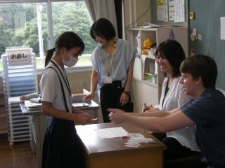 内灘町国際交流員のジェイコブさんと高松中学校のグレースさんに来ていただき、3.5.6年生の外国語の授業で指導していただきました。子どもたちは、いつもの友達とは違う人に話すためか、いつも以上に必要感をもって話せていたと思います。ジェイコブさん、グレースさん、ありがとうございました。