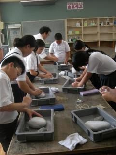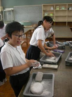 3.4限に県埋蔵文化センター、市スポーツ文化課の職員の方々に指導していただきながら、勾玉づくりに挑戦しました。角ばった硬い石を丸く削って磨くのは大変な作業だということを6年生は実感していました。県埋蔵文化センター、市スポーツ文化課の皆様、ご指導ありがとうございました。先日、運動場で焼いた土器も出来上がりました!