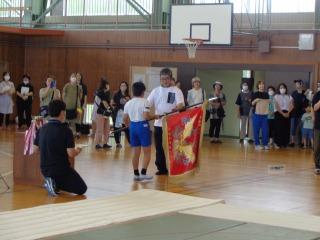 昨日からの悪天候で、開催が危ぶまれた相撲大会を5年ぶりに開催することができました。女子個人戦を体育館で、男子個人戦、団体戦を相撲場で行いました。白熱した取組も多く見られ、すばらしい大会になりました。ご協力いただいた保護者の皆様、あたたかい声援を送ってくださった地域の皆様、本当にありがとうございました。