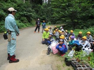 5,6年生が3,4限目に学校林へ行きました。森林組合の方のお話を聞き、植樹を行いました。急な斜面での作業は大変でしたが、クヌギの木を植樹し、自分の名前が入ったプレートを木にぶら下げて作業を終えました。本当にお疲れさまでした。
