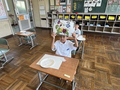 【1年生 アサガオ押し花アートづくり】
