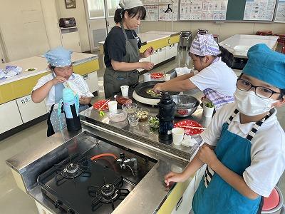 【2・3年生 作った野菜でピザづくり】